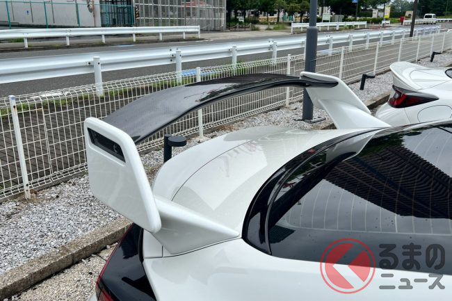 自慢のカスタムポイントは、グラージオ製エンブレムとGRダックテールスポイラーです」