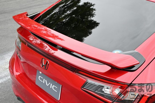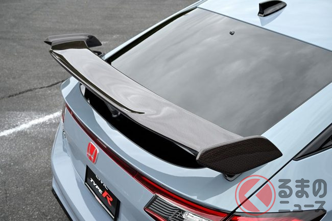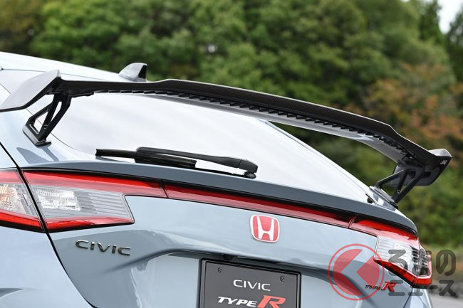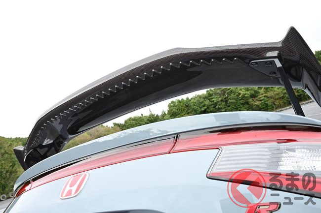 エアロ交換で運転が上手くなる!? ホンダ新型「シビックタイプR」テールゲートスポイラーは“ギザギザ”が効いてる!