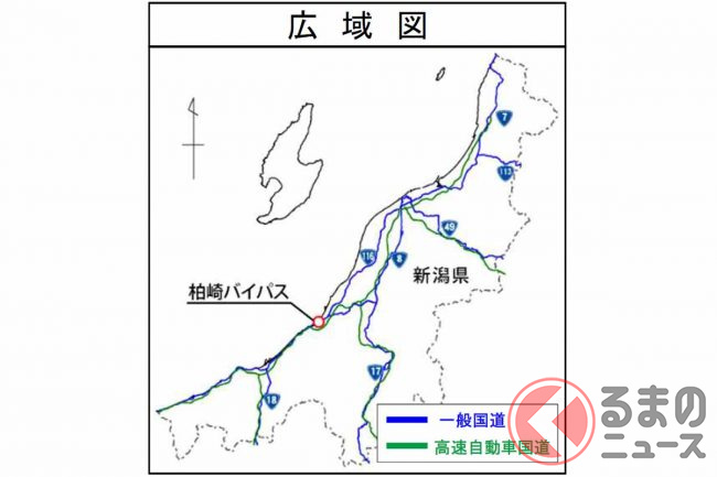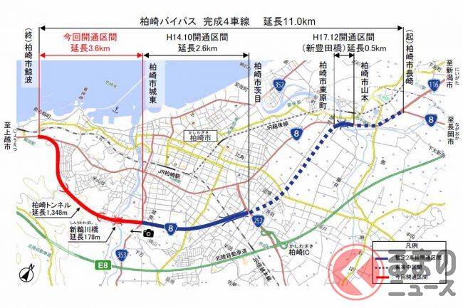 国土交通省北陸地方整備局長岡国道事務所は2022年10月7日、建設を進めている国道8号の柏崎バイパスが、11月27日に延伸すると発表しました。