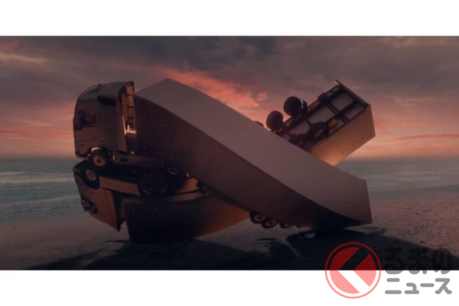 “トラック”の「ラブストーリー」爆誕!? 巨大なクルマが滑って跳ねて飛んで絡み合う! ボルボの“シュール”すぎる動画がスゴイ