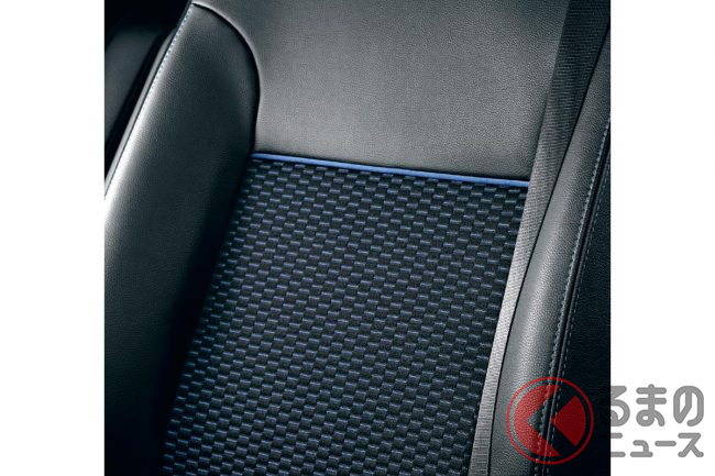 ドアトリムおよび助手席トレイのキルティング形状を緻密なテクスチャ形状に変更するとともに、インストルメントパネルの加飾パーツ色は従来よりも深みのあるブルーになりました。