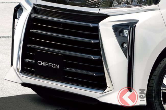 シフォンは、標準モデル「シフォン」とエアロ系モデルの「シフォン カスタム」が設定されますが、今回シフォン カスタムはフロントフェイスが刷新されました。