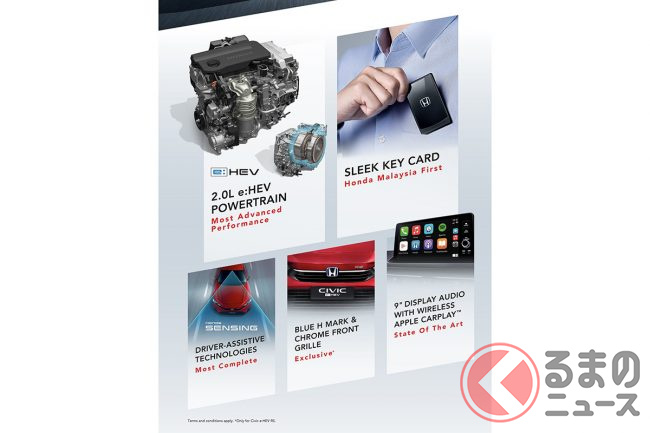 ホンダのマレーシア法人は、2022年10月13日に公式SNSを更新。新型「シビック e:HEV RS」の予約を受け付けていることをアナウンスしています。公式サイトでも、導入される仕様の一部が明らかになっています。