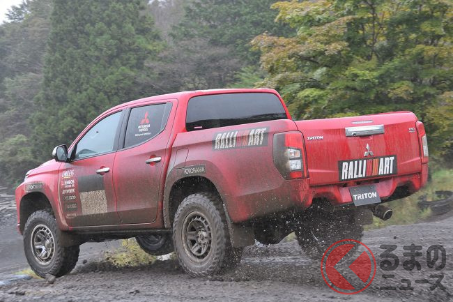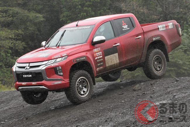 2022年10月上旬に山梨県のオフロードコースで行われた取材会では、ラリー参戦に向け耐久試験を行った試験車両のトライトンが紹介されました。