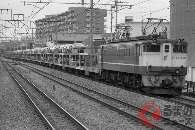 戦後の急速なモータリゼーションの進展で、トラックによる貨物輸送は「ライバル」ともいえる関係ですが、そんな鉄道貨物で「クルマ」が輸送されていた時代もありました。