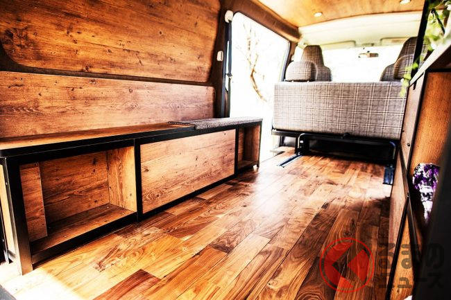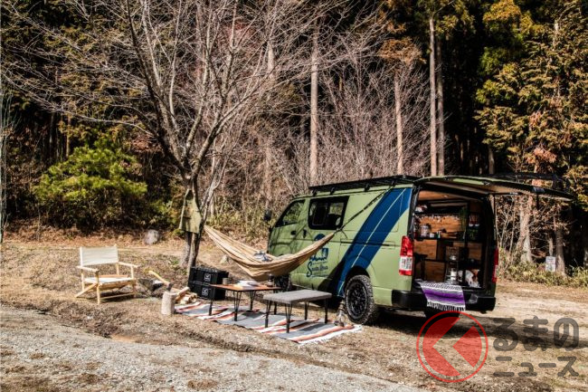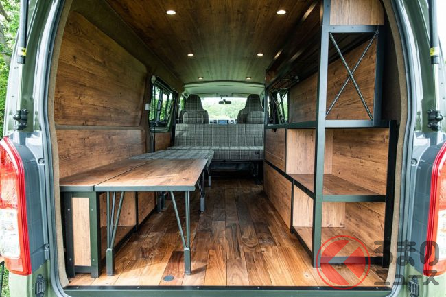 めちゃ「オシャレカフェ」みたい! 「高級ベッド」搭載のトヨタ「ハイエース」 フルフラット仕様の快適「車中泊カスタム」とは
