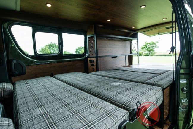 上下にマットを配置することによりダイネットモード(テーブル)としても使用が可能なベッドキットが装着されています」