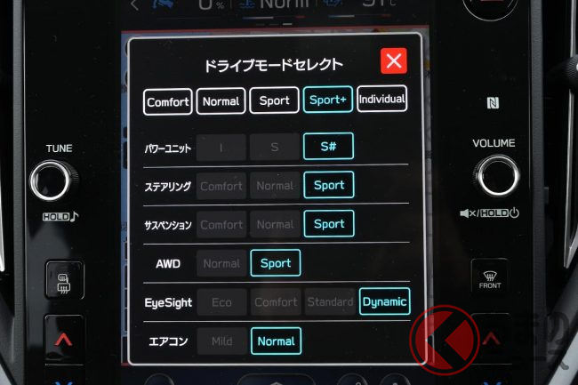 ここ最近のスバル車は、欧州車から乗り換えるユーザーが多いといいますが、彼らに話を聞くと「ノーマルでは物足りなさがある」という意見も。一方、歴代スバルを乗り継いできたユーザーからは「(従来の)STIモデル(後述)に興味はあるけど、自分にはオーバースペック」との声も聞かれ、そうした層に応えるのがSTIスポーツというわけです。