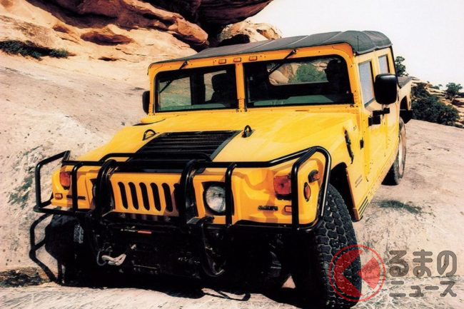 前身のハマー「H1」は、ボディビル世界チャンピオンにしてハリウッドスター、そして元カリフォルニア州知事のアーノルド・シュワルツネッガー氏が、米軍の高機動多目的車、通称「ハンヴィー」を元にした特注車両をAMゼネラル社にオーダーしたもので、1992年にハンヴィーの民生品モデルとして登場しました。