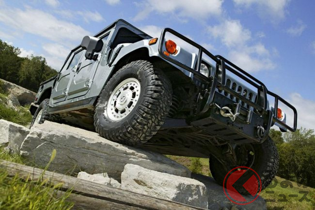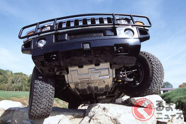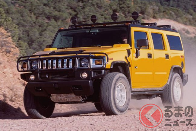米ゼネラルモーターズのハマー「H2」は、全長5171m、全幅2062mm、全高2012mmという存在感のあるボディを持ちます。