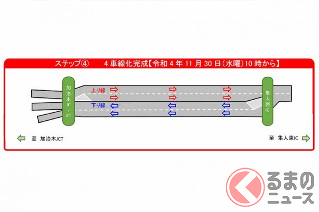 また、災害復旧時に4車線を柔軟に運用できることから、通行止め期間の短縮が図れるとしています。