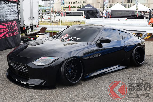 ついに実車展示!? 漆黒の新型「フェアレディZ シャコタン仕様」お披露目! わずか5日で仕上げた極上カスタマイズとは