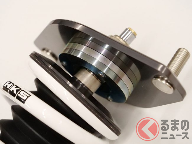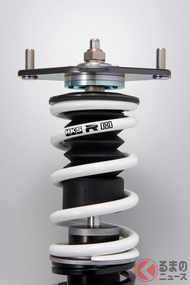 その特徴としてHKSは、「熱ダレに強く高粘度の新開発専用ダンパーフルード『SRF(Super Response Fluid)』および高強度スプリング『LVS(Low Vibration Spring)』の採用により、今までの車高調の常識を覆す高次元での走りと乗り心地の両立を実現」「スプリング荷重を受けるリテーナーを新規採用したことで、スプリングに掛かる曲げ荷重をキャンセルし、ねじれを吸収することで追従性を向上。あらゆる場面で『LVS』の性能を発揮」「リアスプリングは専用アダプターとアジャスターを用いてID65(バネ内径65mm)直巻対応とし、これによりレート変更の自由度が向上」といったポイントを挙げています。