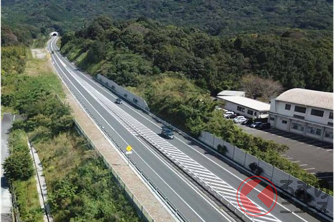 NEXCO西日本によると、これにより土砂崩れなどの災害時に対面通行の暫定2車線だと通行できる車線を確保するのに時間を要しますが、4車線だと復旧工事と並行して被災しなかった反対側で対面通行運用するなど応用が利くため、通行止め期間の短縮が図れるといいます。