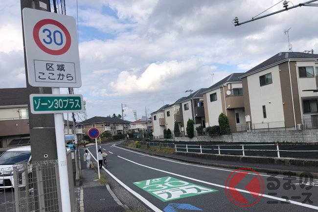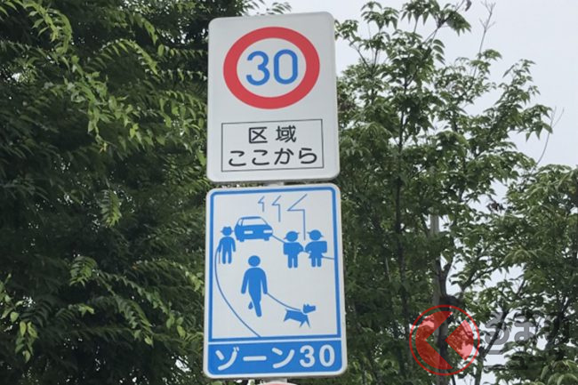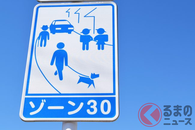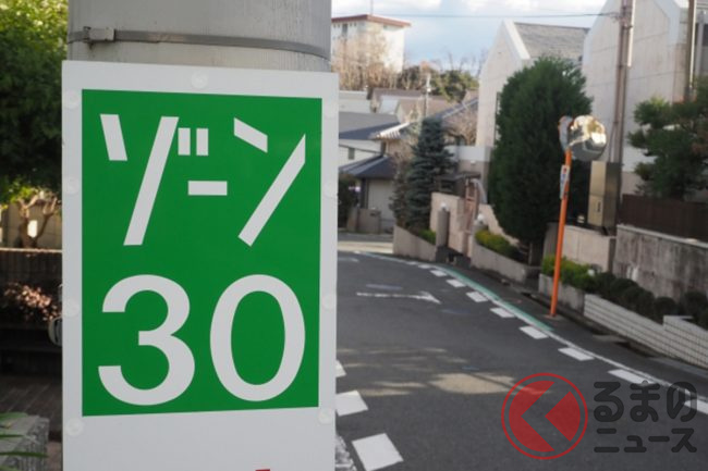 ![街中などの生活道路で実施される「ゾーン30」の標識看板[画像はイメージです]](https://kuruma-news.jp/wp-content/uploads/2022/10/20221021_zone30_traffic_000.jpg?v=1666341668)
