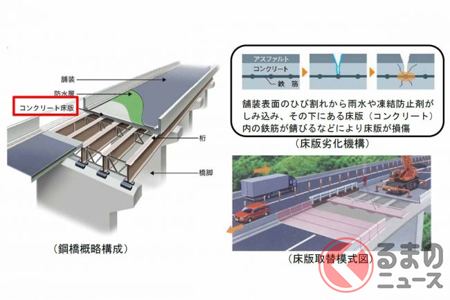 工事は開通から53年が経過している滝沢川橋や所領橋の老朽化したコンクリート床版の取り替えなどが予定されています。
