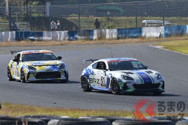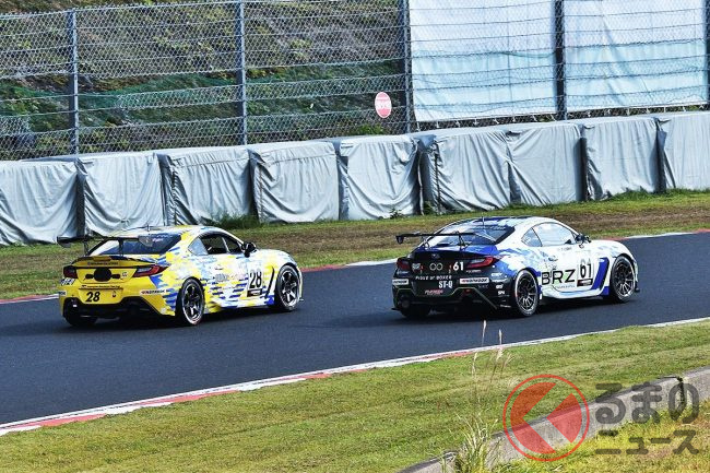 前回(第5戦もてぎ)はGR86(以下GR86 CNFコンセプト)/SUBARU BRZ(以下BRZ CNFコンセプト)共にノントラブルでの真剣勝負が繰り広げられましたが、今回はどのような戦いだったのでしょう。