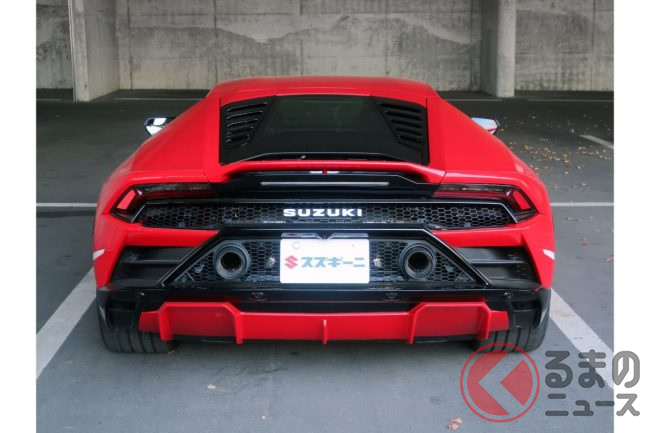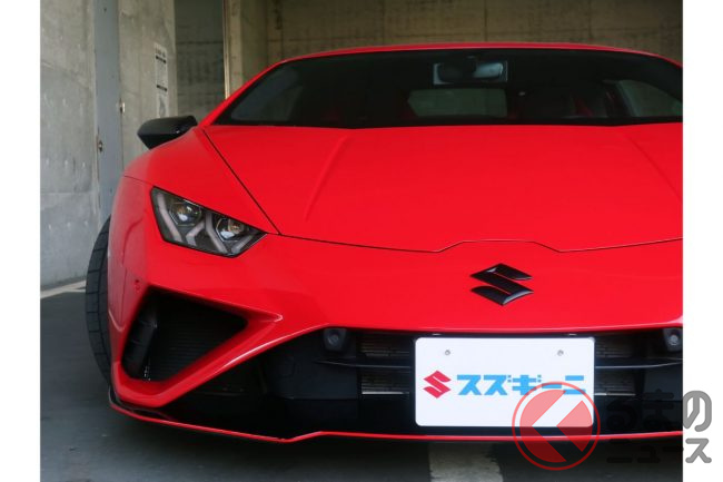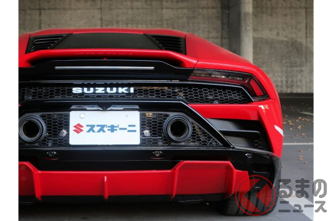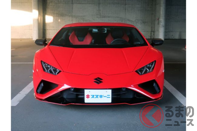 2022年10月11日、ジープ「ラングラー」などクルマを複数台所有する九壱里美氏は、自動車系SNSに、自身のランボルギーニ「ウラカン」のエンブレムをスズキ仕様にするなどした「スズギーニ・V10 EVO」を投稿しました。