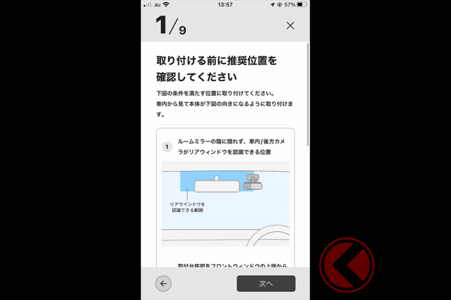 自力で取付けることも可能で、NP1の設定や地図の操作などをおこなう専用アプリ「My NP1(以下専用アプリ)」を起動するとイラストでわかりやすい説明がなされており、難しいカメラ位置もユーザー自身で調整可能です。