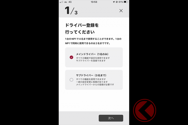 取付けが完了すると、専用アプリによる3ステップの簡単な機器登録をおこない、いよいよNP1でドライブすることができます。