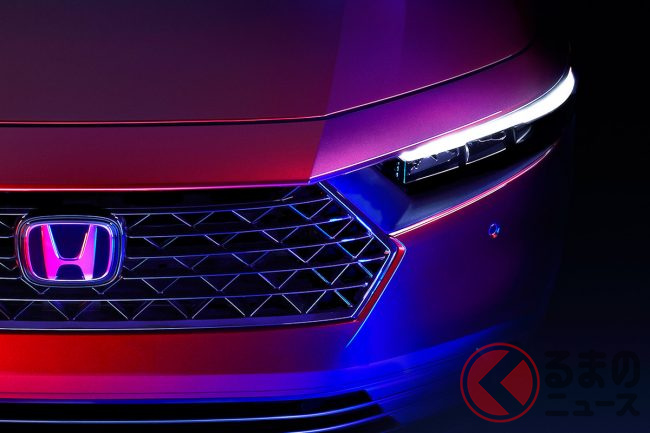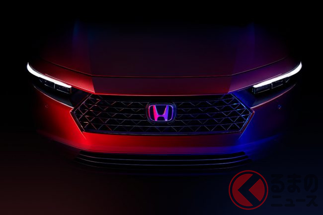 ホンダ、新型「アコード」先行チラ見せ! 11月完全公開へ 迫力六角形グリルで登場か!? 米で披露された姿とは