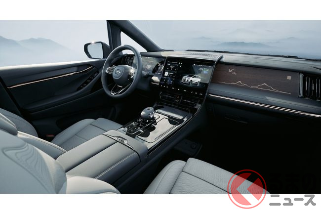 インテリアも外装同様に豪華な仕様で、ダッシュボードの中心に配置された巨大な液晶モニターやアンビエントライトが先進性を感じさせます。