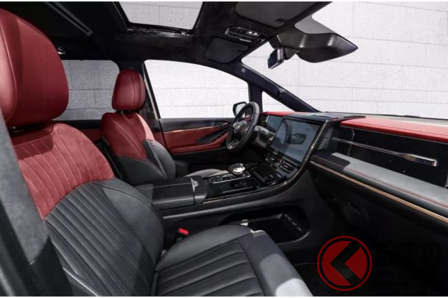 ボディサイズは、全長5193mm×全幅1893mm×全高1832mm、ホイールベースが3070mmで、外観が似ているトヨタ「アルファード」(全長5m弱)よりもさらに大柄です。