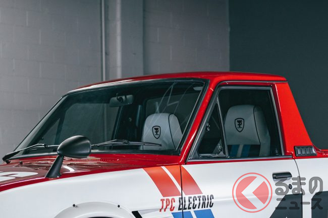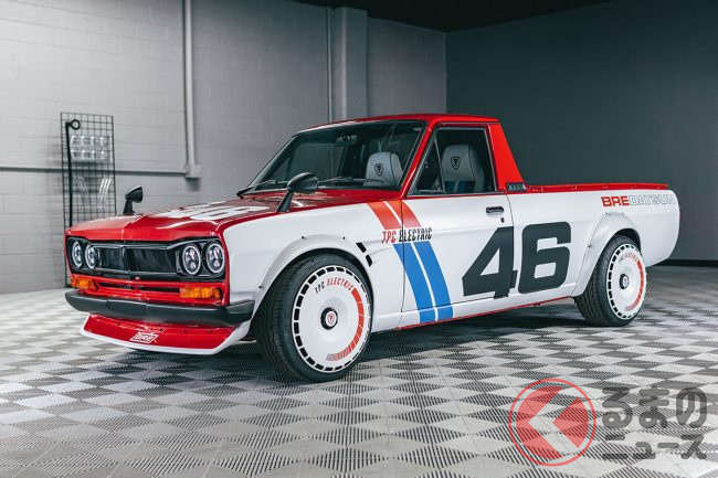 まさかの日産「ハコスカ トラック」世界初公開!? ド迫力顔「サニトラ」の中身は「リーフ」 驚愕カスタム実車を米国で発表