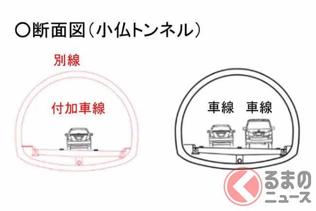 東京と神奈川の都県境を貫く小仏トンネル(下り1642m、上り2002m)は、特に上り線で土休日を中心に渋滞が常態化しています。現在はこの渋滞対策として新小仏トンネルの掘削が進行中です。