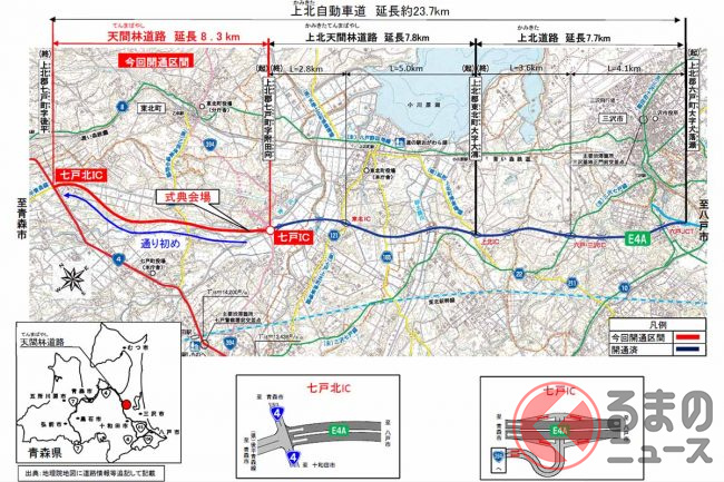 なお、仮称だった「天間林(2)IC」は、今回の開通に先立ち「七戸北IC」に決定しています。