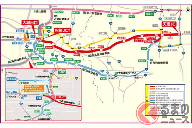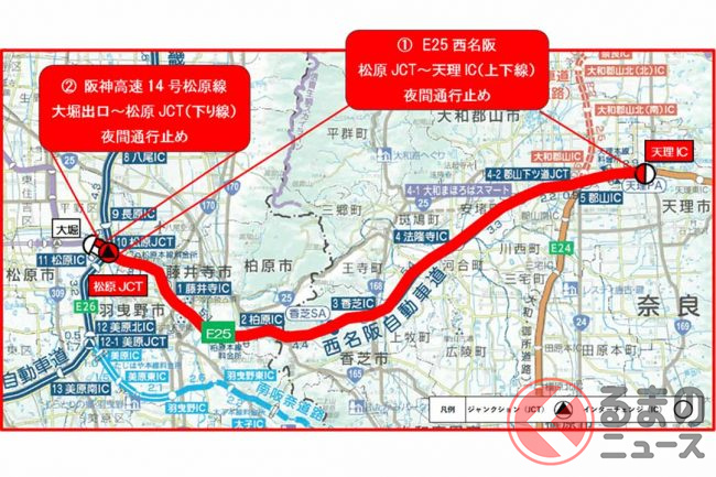 西名阪道「全線・5夜連続」通行止め 28日から補修保全工事 NEXCO西日本が迂回呼び掛け