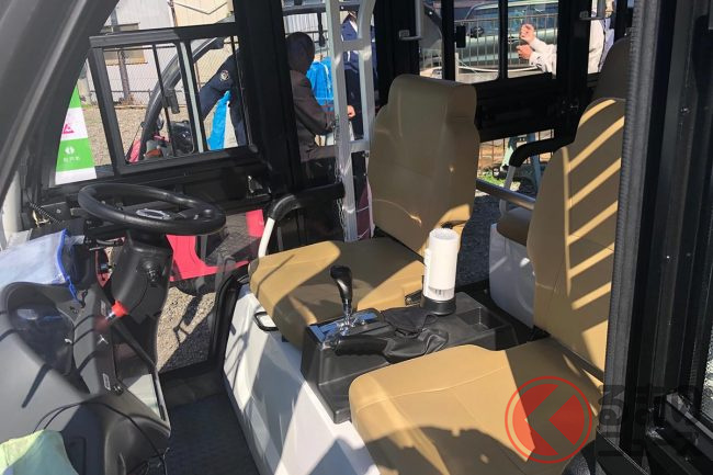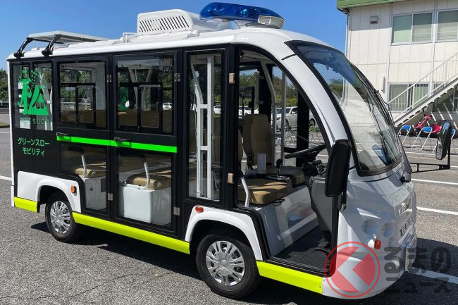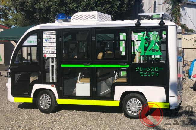 今回、松戸市河原塚地域でのオープニングセレモニーに登場したのは「NAO-6J」で、車両寸法は全長4050mm×全幅1500mm×全高2300mm、ホイールベースは2000mmで車両重量は1170kg。ただしNAOー6Jは本来6人乗りですが、今回登場した松戸モデルは6J改良版で乗車人数は、運転手を含め8名となっています。