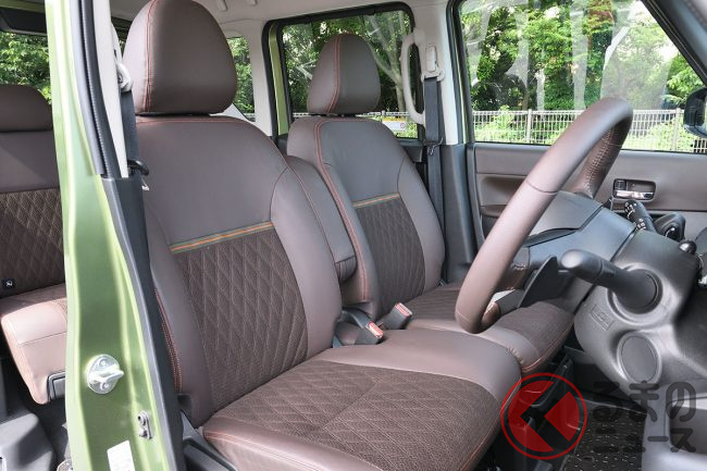 ボディカラーには、新開発色として「アッシュグリーンメタリック」を設定。三菱では「都会からアウトドアレジャーまであらゆるシーンに馴染む新色」だとし、新型デリカミニのコンセプトに合わせて説明します。