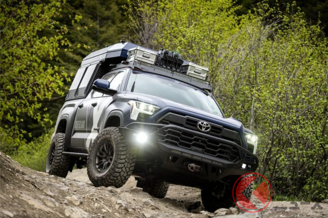 発表に合わせてSEMAショー2022に展示されたトレイルハンターのコンセプト車両は、トヨタ最大級のピックアップトラック「タンドラ」をベースとして、固有のサスペンションセットアップ、スキッドプレート、ルーフラック、バンパー、照明、冷蔵庫、ルーフテントなどが装備されており、納車されたその日から、冒険の旅に出かけることが可能になっています。