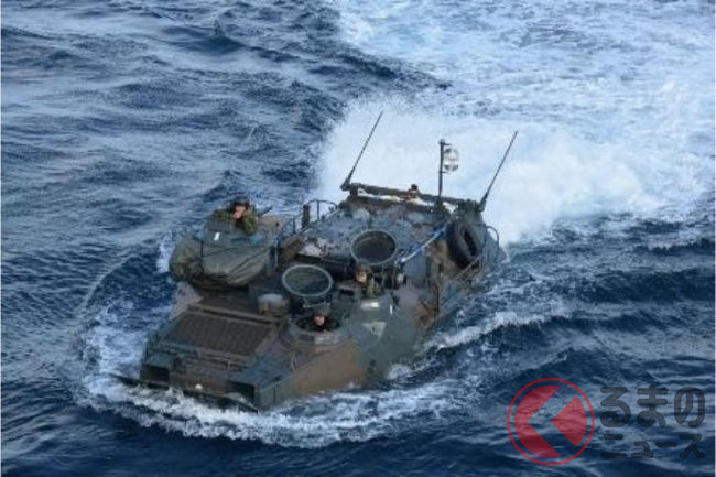 しかし、単に水に浮かぶだけでなく、まるでフネのように波のある海でも航行できるのが陸上自衛隊の水陸機動団に配備されているのが「水陸両用車:AAV7」です。