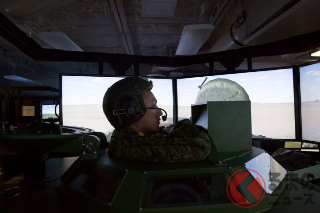 操縦手は戦車などの装軌車から転換してきた隊員が多いのですが、まるで建物の2階から操縦しているような高い位置から車両感覚をつかむのが訓練の第一歩になるそうです。
