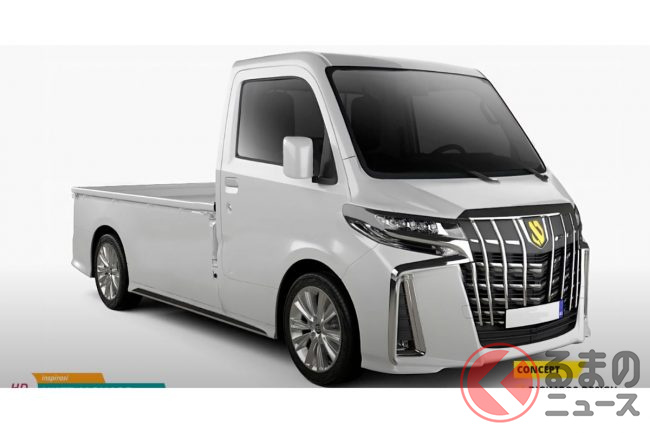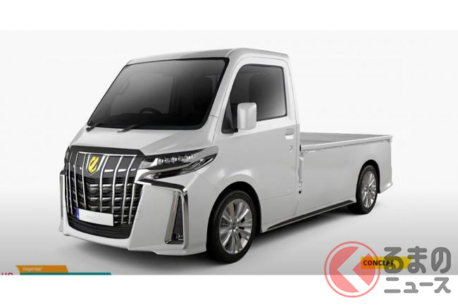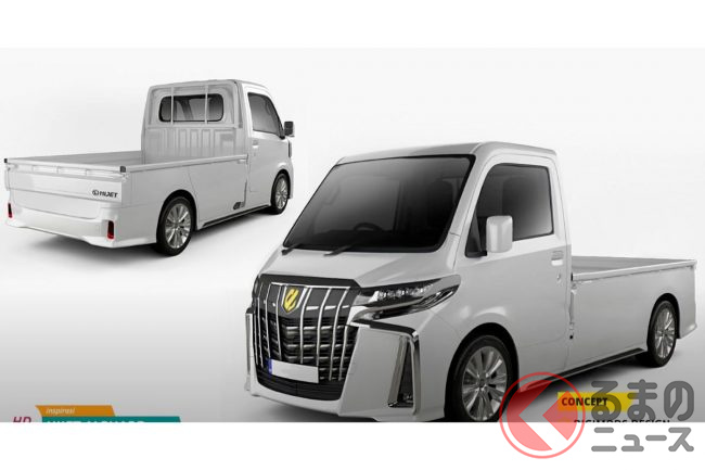 長い歴史を持つダイハツの軽トラック「ハイゼットトラック」。今回Digimods DESIGNはそんなハイゼットトラックをトヨタの高級ミニバン「アルファード」顔にした「軽トラファード」とも呼ぶべきレンダリングを作成、自身のYouTubeチャンネルで公開しました。
