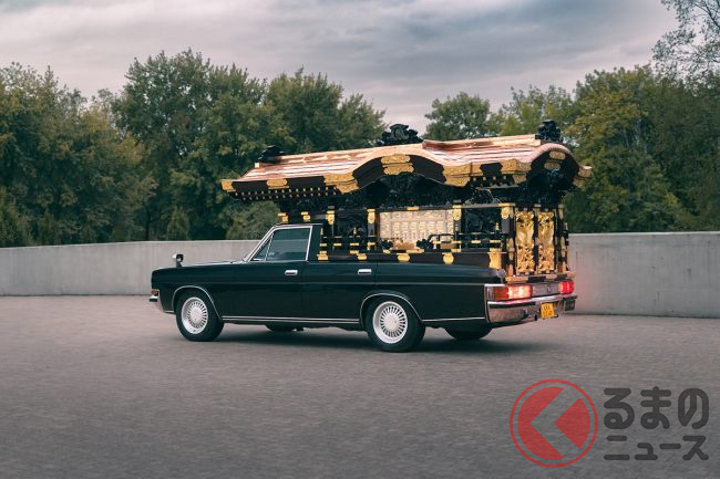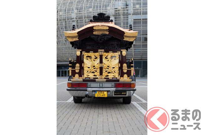 かつて葬式などで見かけることの多かった宮型霊柩車ですが、最近は黒一色のシンプルな見た目の霊柩車が好まれるようです。そうしたなかで36年前に製作された日産「プレジデント」の宮型霊柩車が海外で販売されていました。