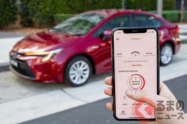 加えて、スマートフォンアプリ「myToyota Connect」(一部車種)を併用することで、残燃料や航続距離、ドアのロック状態、窓の開閉状態など、カローラの情報をリモートで確認することができます。