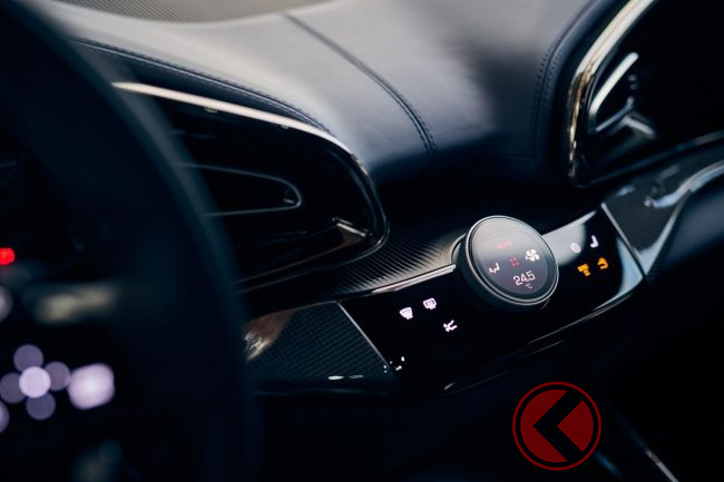 とはいえ、新型プロサングエのボディサイズは全長4987mm×全幅2028mm×全高1589mmと堂々たるプロポーションをもち、トヨタ「ヤリスクロス」と同等の低い全高とロング&ワイドボディ形状の組み合わせによるスポーティなフォルムや、高められた最低地上高が、やはり「SUV」らしい印象を与えます。
