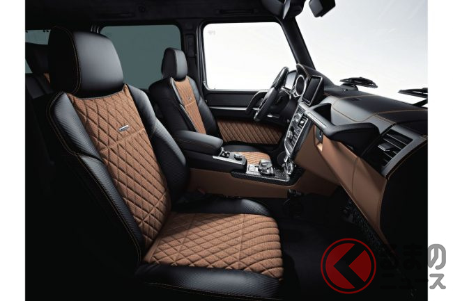 通常のGクラスの車高を極端に低くし、ワイドフェンダーを取り付け車幅も拡張させました。こによりSUVとは思えないほど、ワイド&ローなスタイリングになっています。