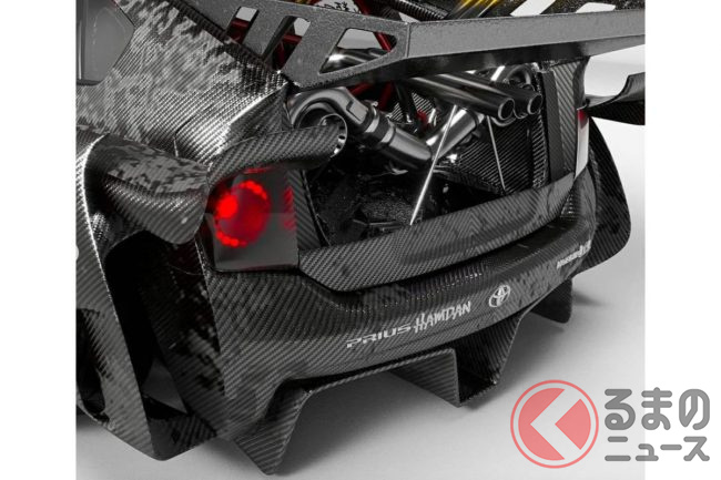 リアには、巨大なウィングが装備されるほか、ディフューザーが取り付けられ、マフラーはセンターマフラー化されるなど、まさにレーシングカーといった装いです。