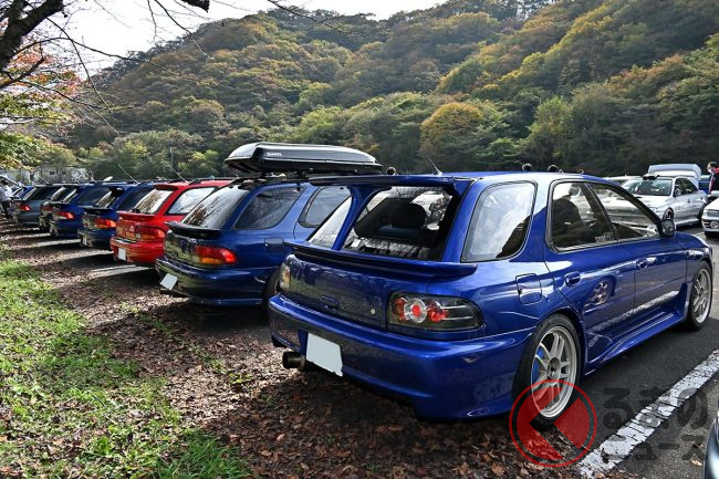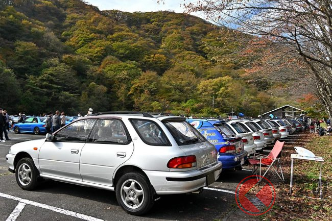 誕生から30年経った2022年10月23日、インプレッサが生まれた群馬県、そしてアニメの聖地としても縁がある榛名山の駐車場において大規模なオフ会が開催され、250台を超える初代インプレッサ(GC/GF系)が集結しました。