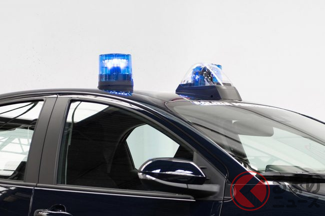 ヤリス ハイブリッドとプロエースシティの警察車両はいずれも真っ黒なボディに、ボンネットとサイドにはブルーのラインが入れられた、警察車両とは思えないほどカッコ良いデザイン。ルーフには青い回転灯が装備されています。