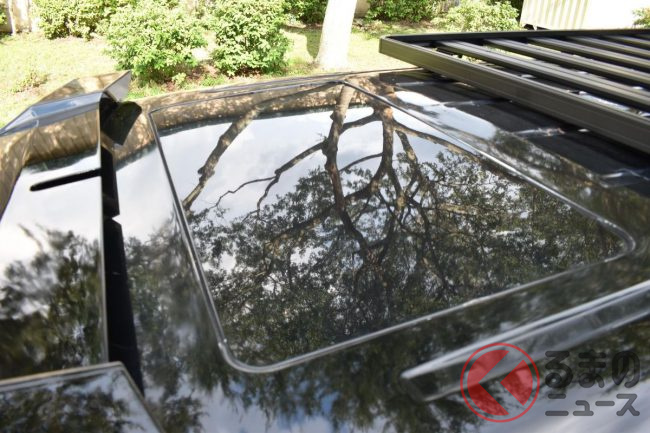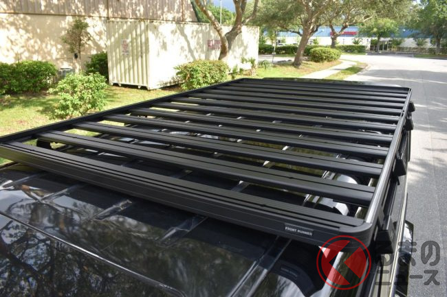 外装もベージュとブラックのツートンに塗られ、ルーフラックやルーフライト、リアラダー、ブルバーを追加するなど各部がカスタマイズされ、本格オフローダー感を高めています。