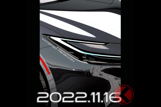 また、ティザー画像には「HYBRID REBORN」というキャッチコピーも添えられており、ハイブリッドシステムの刷新も予想されます。