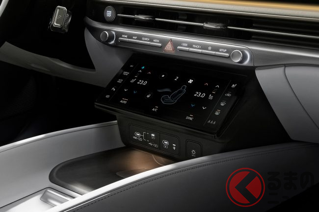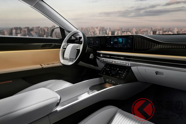 インテリアは全体的に直線的なデザインとなり、12.3インチのマルチメディアディスプレイの下には10.25インチのエアコン操作ディスプレイが採用されるなど、ハイテクさを主張。