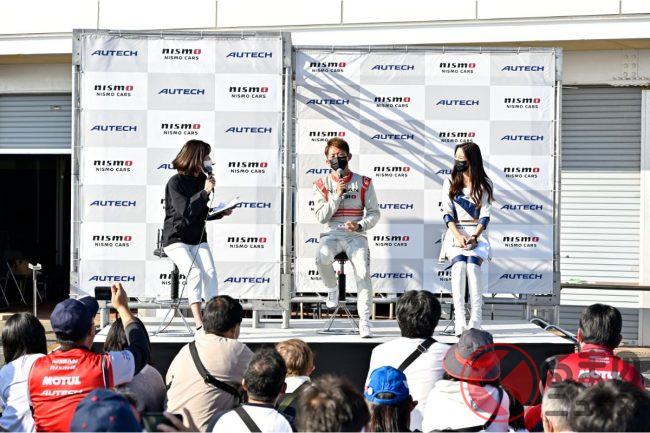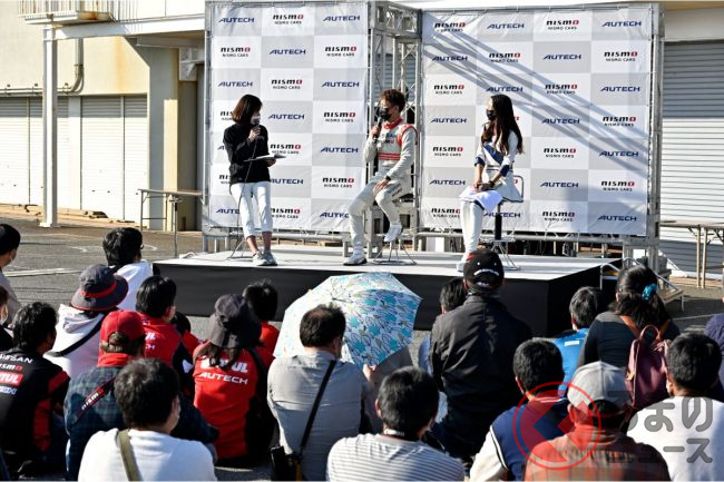 イベントでは日産モータースポーツ&カスタマイズの片桐隆夫社長の挨拶や、2022年シーズンにKONDO RACINGの24号車リアライズコーポレーションADVAN ZでSUPER GT GT500クラスに参戦したレーシングドライバーの平手晃平選手、2020年からオーテックレースクイーンを務めている美すずさんの2人がゲストとして登場してトークショーもおこなわれました。