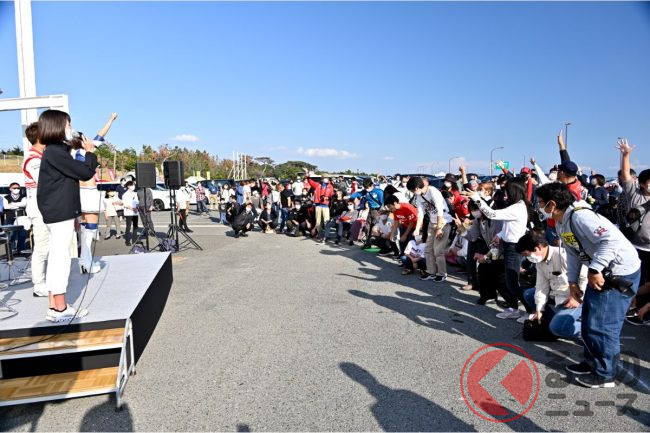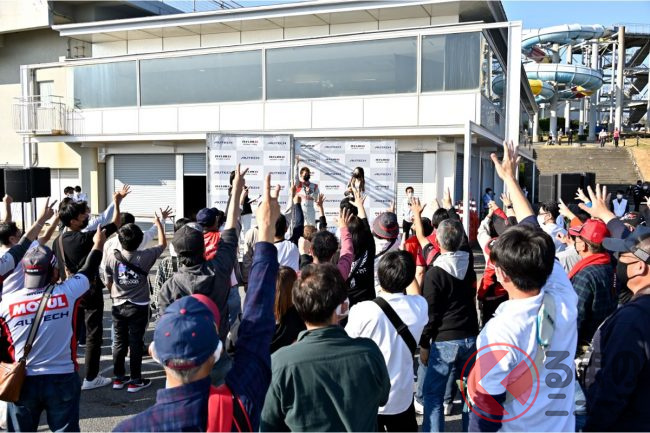 最後にNMCが主催となり、2022年12月4日に富士スピードウェイでおこなわれるニスモフェスティバルの入場券をもらえるじゃんけん大会で盛り上がり終了となり、会場からの退場ではNMC社員が揃ってお見送りをする恒例の風景で締めくられました。