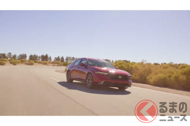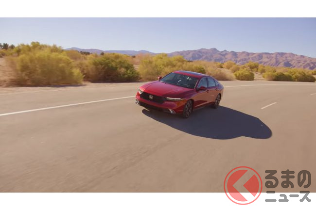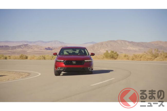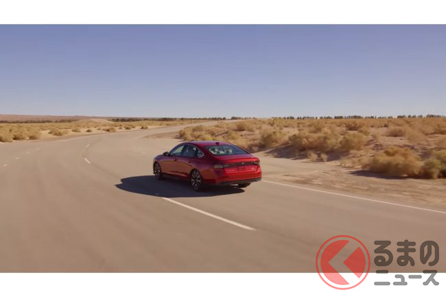 ホンダ「新型セダン」が走った! 新型「アコード」鮮烈レッド仕様の快走シーンを見せつける